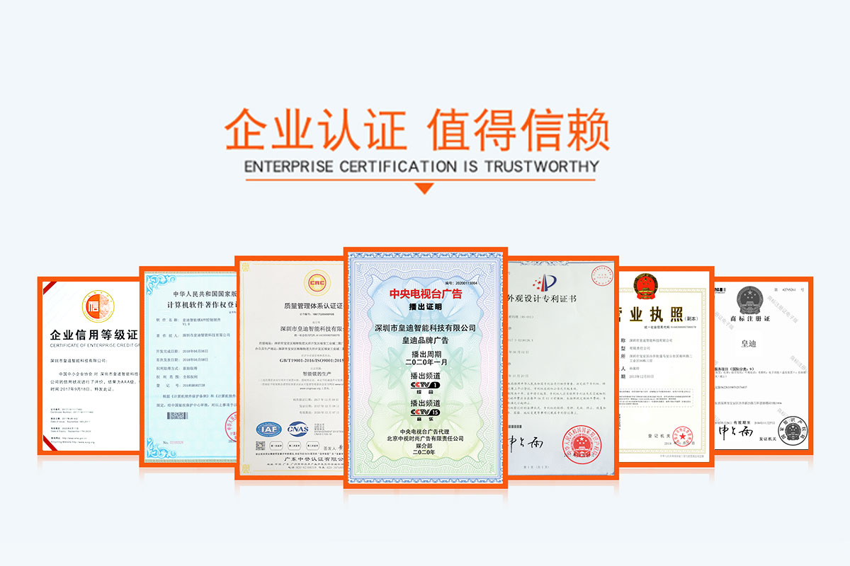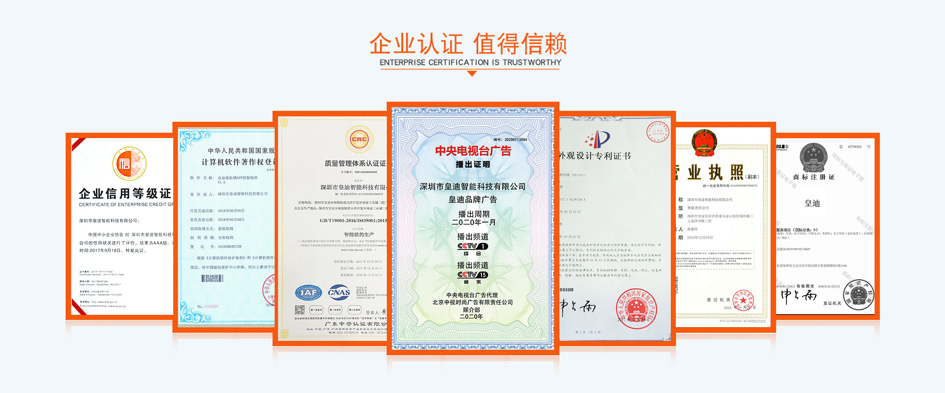 深圳市皇迪智能科技有限公司,是一家集產(chǎn)品研發(fā)、制造、銷售、安裝、售后于一體的全產(chǎn)業(yè)鏈公司,我司專注于酒店刷卡鎖、公寓藍(lán)牙密碼鎖、電子鎖、密碼鎖研發(fā),生產(chǎn),銷售.是國家高新技術(shù)企業(yè),公司已通過ISO9001/2015標(biāo)準(zhǔn)認(rèn)證,并擁有多項國家實用新型專利、外觀專利及計算機(jī)軟件著作權(quán); 皇迪玻璃門鎖廠家一直秉承“以顧客為中心,以人為本,長期艱苦奮斗”的經(jīng)營理念,為全球每一位消費者提供舒適,便捷,安全的高品質(zhì)生活。